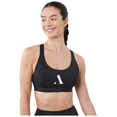 Black sports bra offers excellent support with soft, elasticated straps that hug the body and allow for a custom fit. Lightweight, sewn-in cups provide extra coverage and shaping. Branded to the school specification