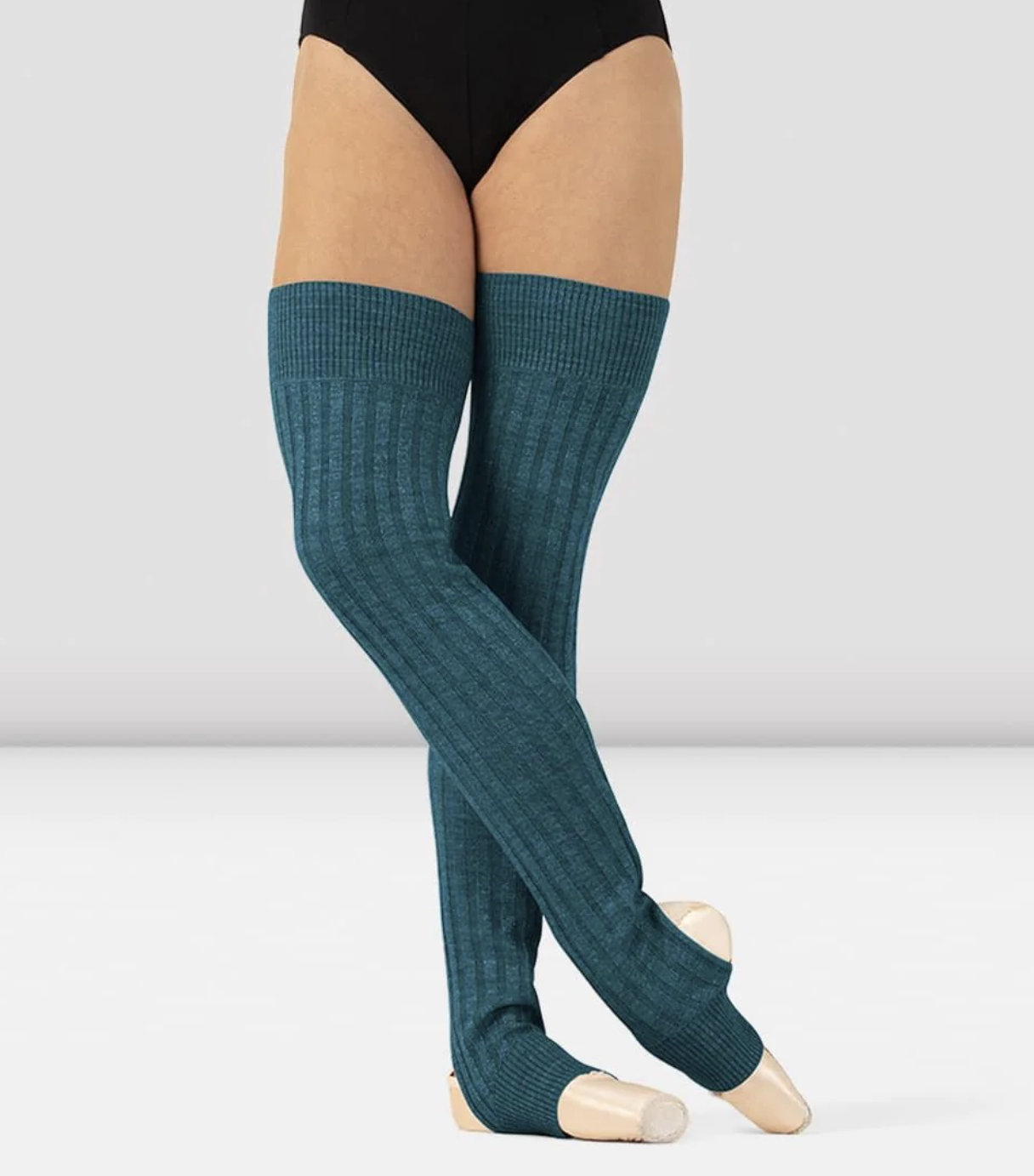 Our Ladies Aspen Thigh High Legwarmers are the perfect addition to your warm-up wardrobe; featuring a thigh high length and rib cuff banding with heel holes to allow for wear with all dance shoes.