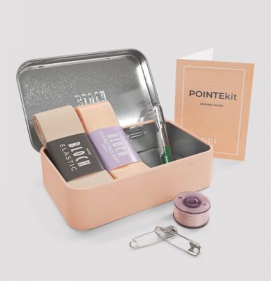 The must-have kit for every pointe dancer! Our Professional Pointe Shoe Kit contains double-faced soft satin ribbon (non-stretch), wide thick elastic, a stitch remover, two safety pins and needle with pink thread for stitching.