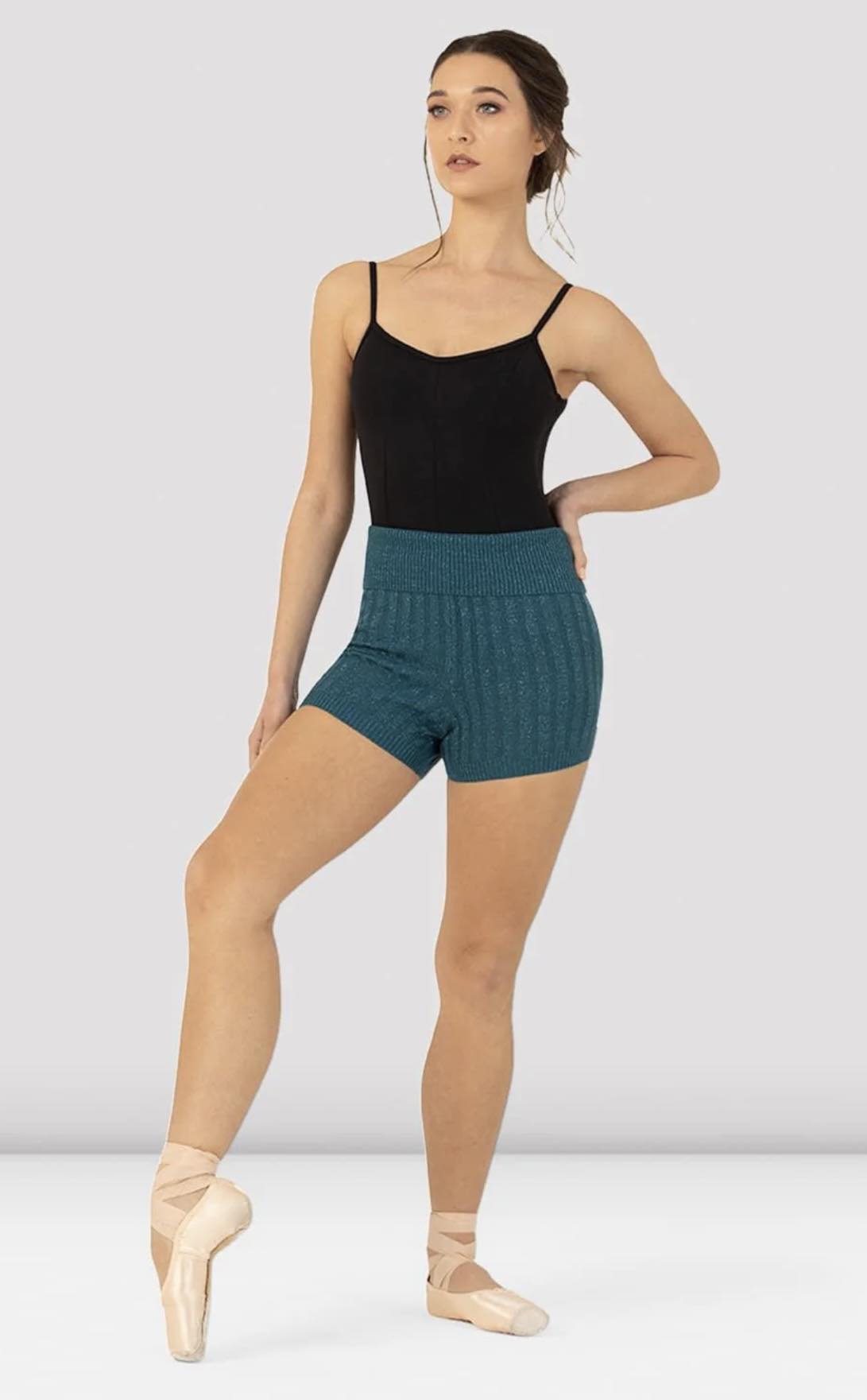 Our Ladies Eira Knit Shorts are the perfect addition to your warm-up wardrobe; featuring a high roll down waist and short length these shorts will pair perfectly with our Sahara Holiday Collection leotards.