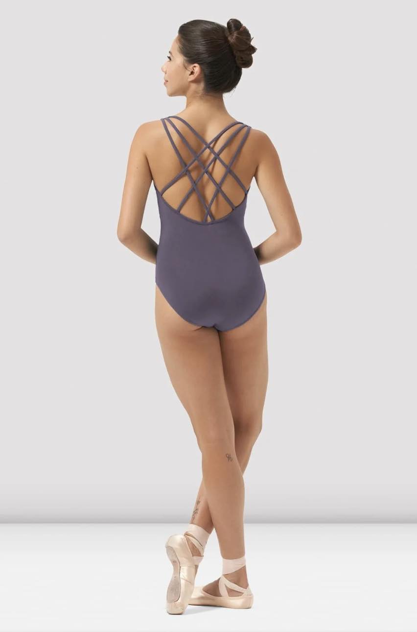 Our Ladies Mirella Boheme Tank Leotard features a scoop neck with tank straps finishing with a triple cross back detail. Part of our Mirella La Bohéme Collection featuring intricate paisley prints, rouleau details and contemporary back designs. This collection highlights a variety of standout silhouettes, available in a trio of muted hues.
