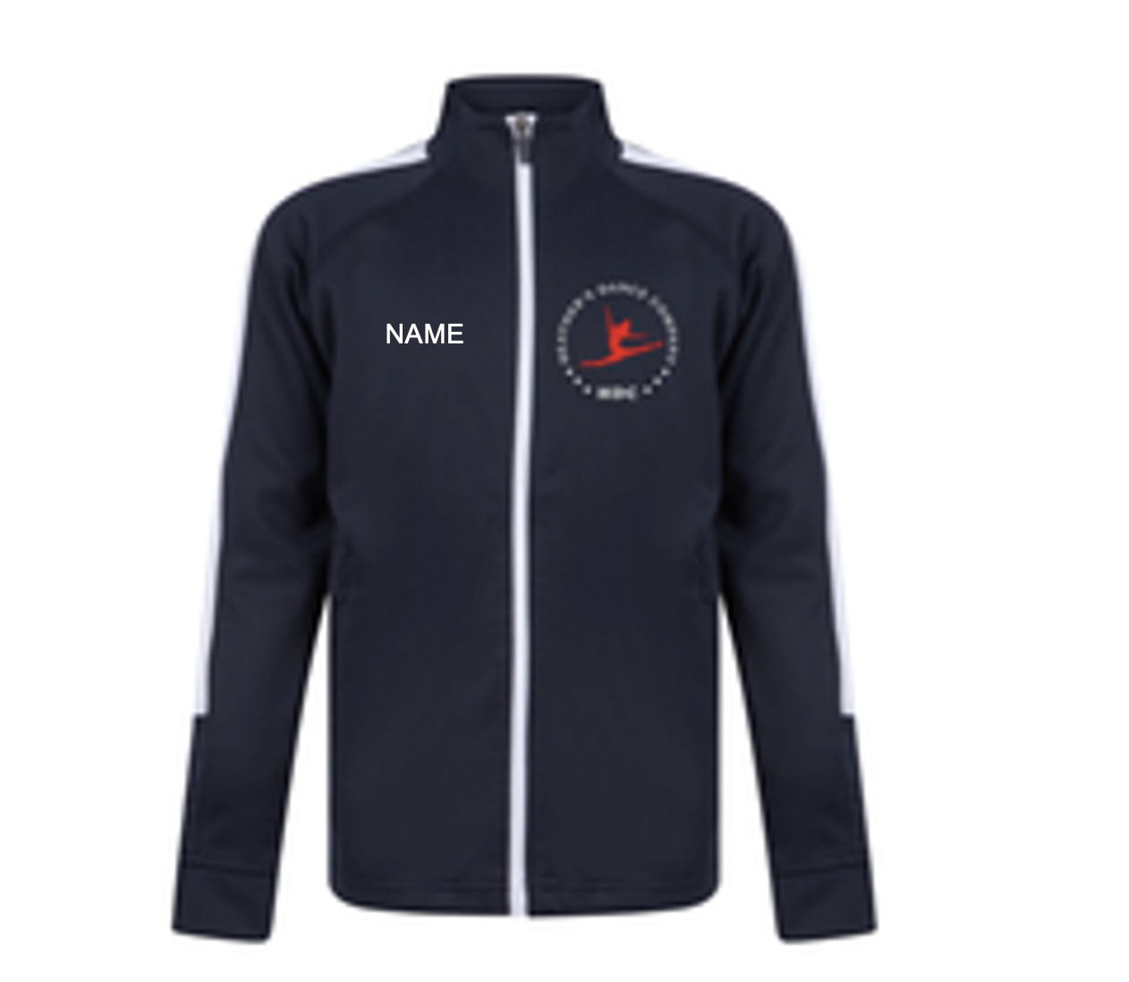 Knit zip navy/white jacket with HDC branding