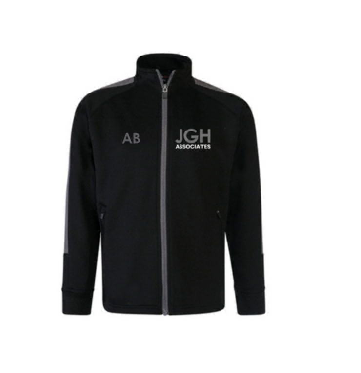 Knit zip Black/grey jacket with JGHA branding