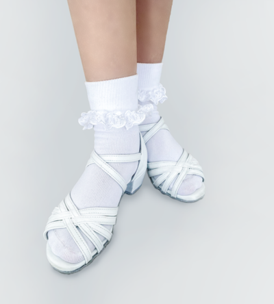Crafted with care, these white ankle socks feature a crisp white lace trim that adds a touch of elegance and charm, making them perfect for both practice sessions and competitions. The high-quality materials ensure durability, comfort, and a perfect fit, essential for maintaining focus and performance during dances.