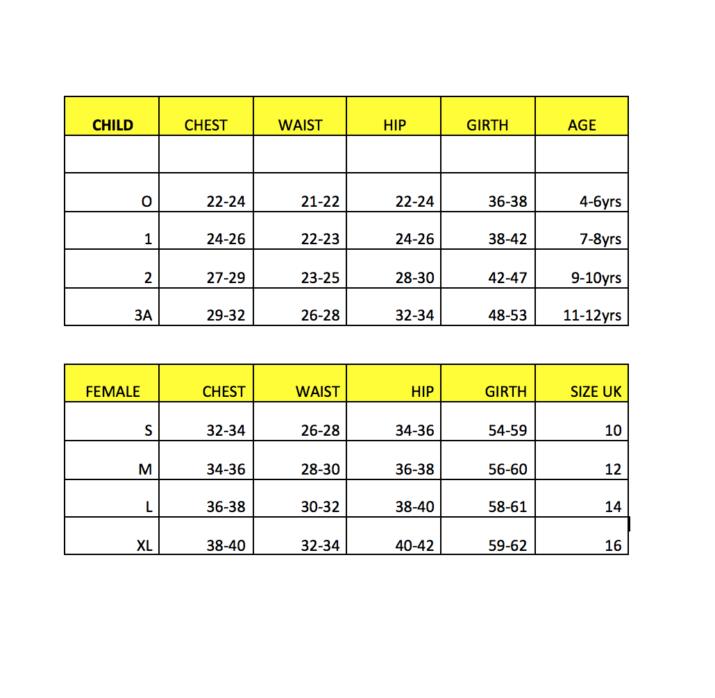 UNISEX CHILD – 4-6, 7-9, 9-10, 11-12 (SEE TOP SECTION OF YELLOW HEADED SIZE CHART)