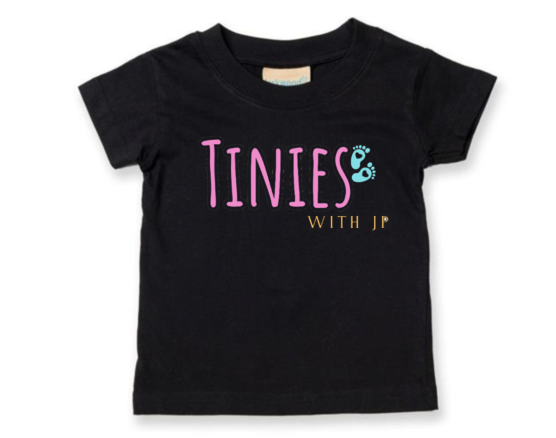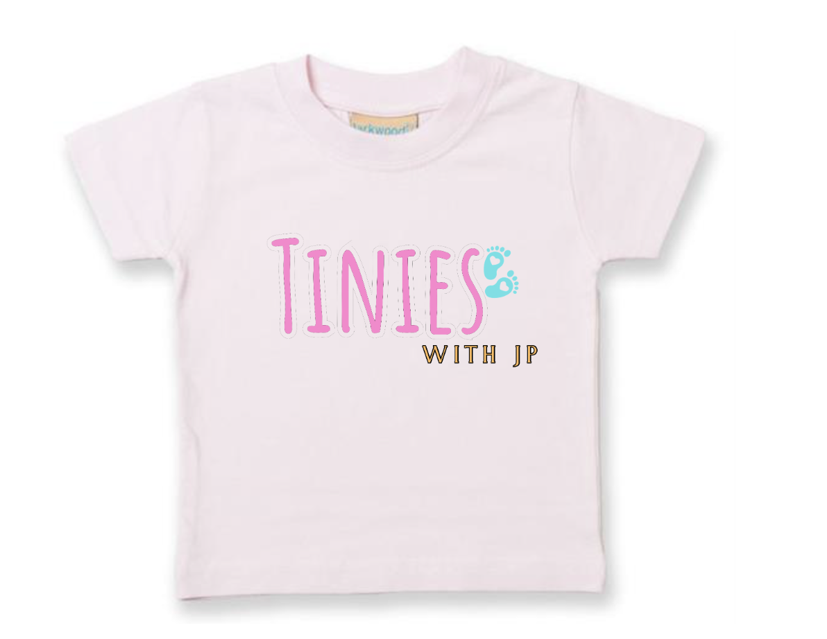 Pink,White or black tshirt with  Tinies logo on the front